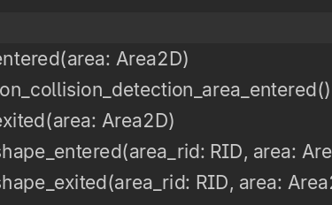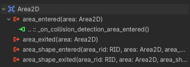 When an Area2D enters (overlaps) another Area2D node, it will emit its area_entered(area) signal, which passes as an argument the other Area2D that intersected it. Connect to this signal in one of your scripts so that you can react to entering another Area2D. This is why it is referred to as an "area trigger", since entering the area has triggered some event or action to occur. You will most likely want to check which collision layer the other Area2D belongs to to determine how to react to this trigger.