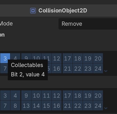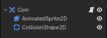 As a CollisionObject2D, it requires one or more CollisionShape2D child nodes to determine its shape, or the area that it occupies in the scene. There may be many occasions where you have an Area2D that doesn't have a visible component to it. That it's, it's not something the player will ever see. An example would be a trap in a dungeon, or a checkpoint where you trigger an auto-save. Also, because it is a CollisionObject2D, it has Collision Layers and Collision Masks that allow you to control what other collision layers can detect it, or can be detected by it. In most cases, an Area2D node will only contain 1 or more collision layers and no collision masks. This is because they only need to indicate that they belong to a collision layer so that another node can detect them, but they don't need to detect other Area2D nodes, as in the case of an item that the player can pick up (like a coin).